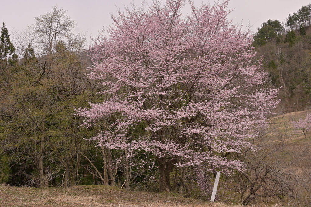 義経三貫桜(ベニヤマザクラ)が昨年より10日ほど早く満開になりました